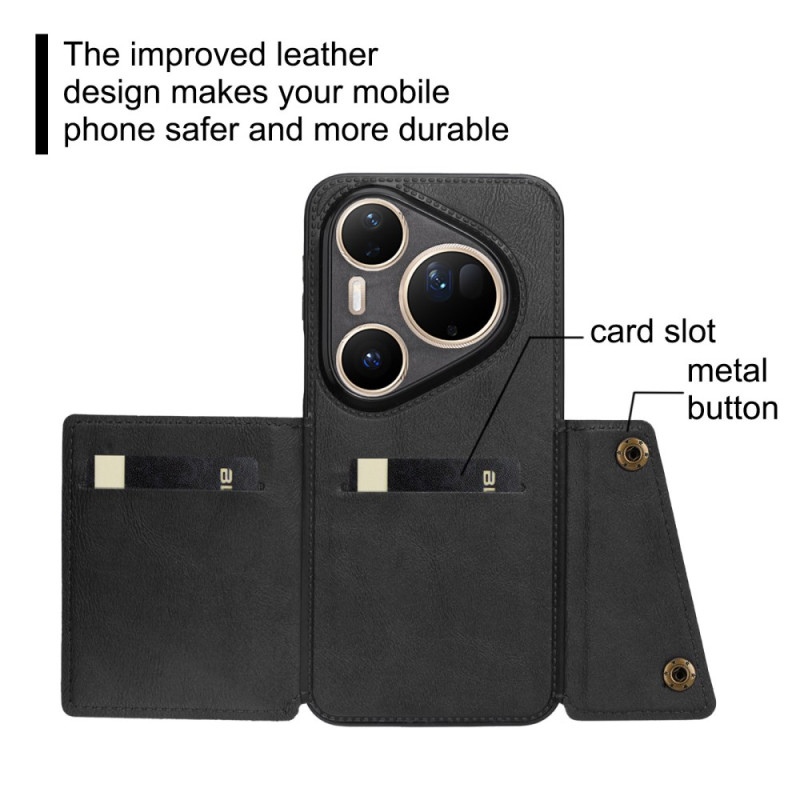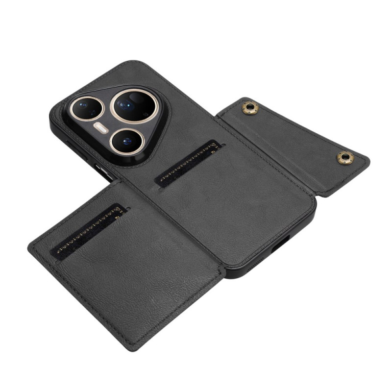 Étui multifonction pour Huawei Pura 80 Ultra combinant protection premium et praticité. Doté de porte-cartes intégrés, d'un support ajustable pour visionnage mains libres et d'une fermeture sécurisée à double bouton-pression.