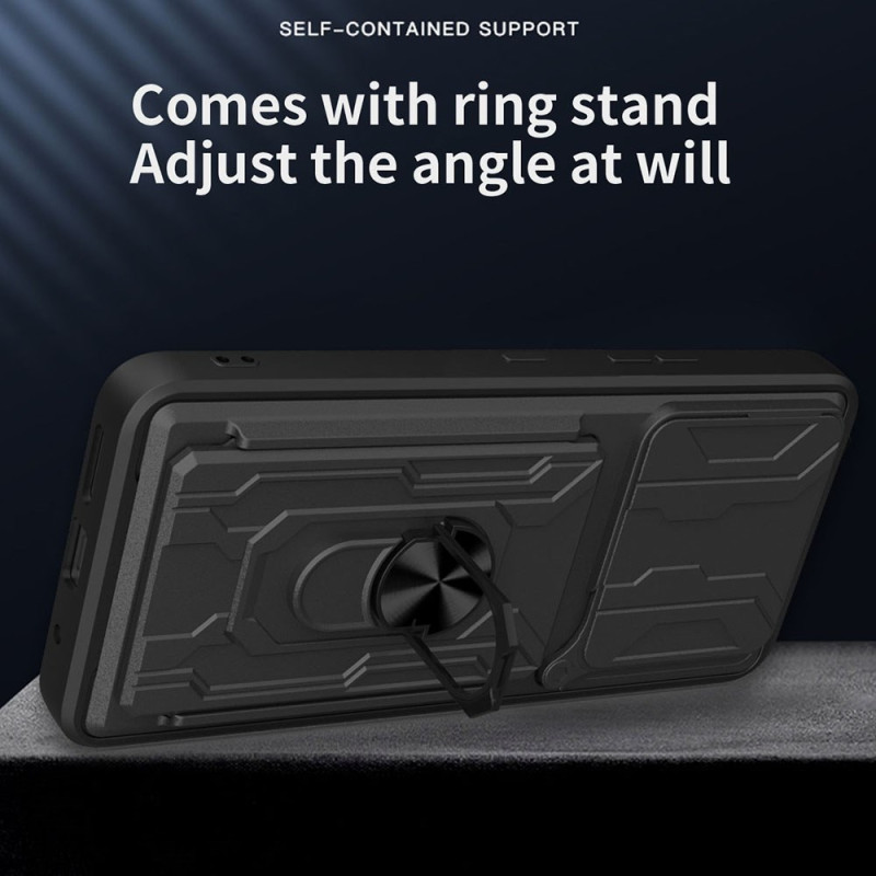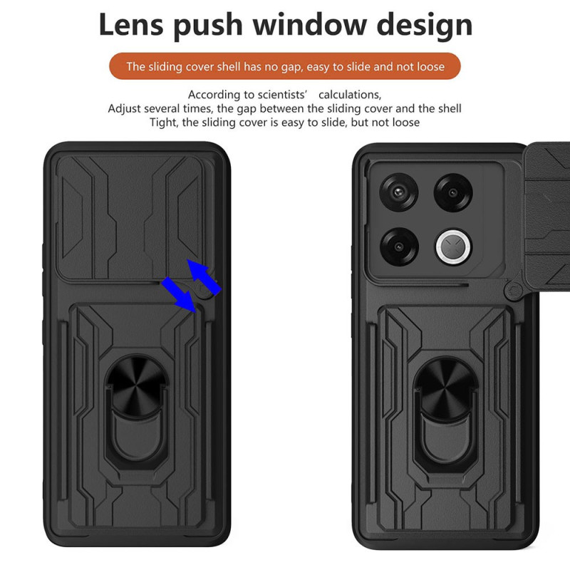 Protégez votre Infinix GT 20 Pro 5G avec cette coque multifonctionnelle dotée d'une béquille métallique rétractable, d'un porte-cartes intégré et d'un système de protection coulissant pour l'objectif photo. Compatible magnétique pour support voiture.