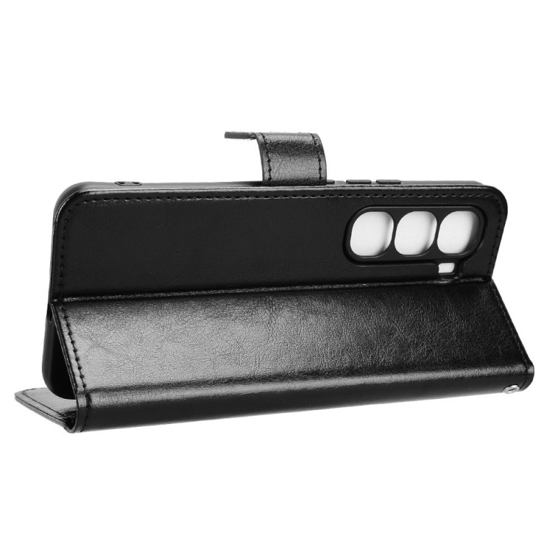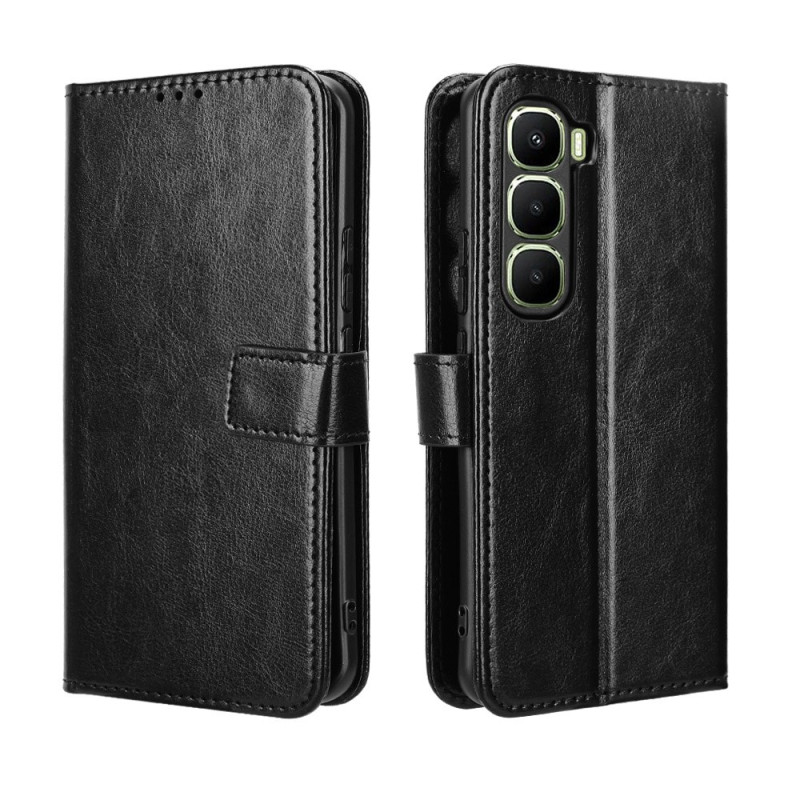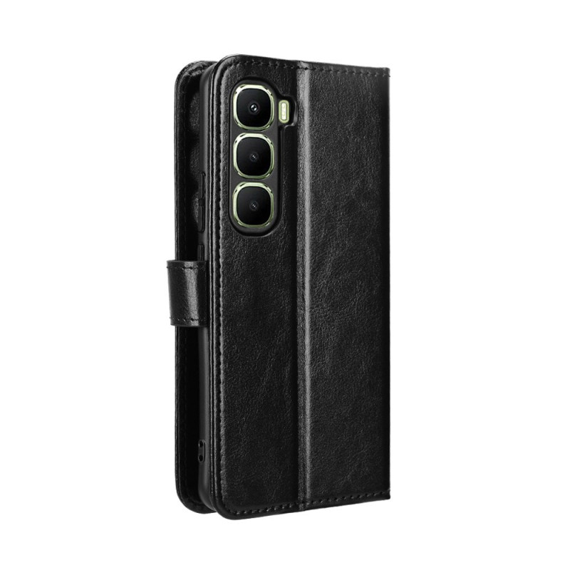 Étui portefeuille élégant pour Infinix Hot 60 Pro 4G avec texture grain cuir. Comprend 3 emplacements pour cartes, 1 compartiment pour billets, fonction support mains libres et dragonne pratique. Protection complète avec fermeture magnétique sécurisée.