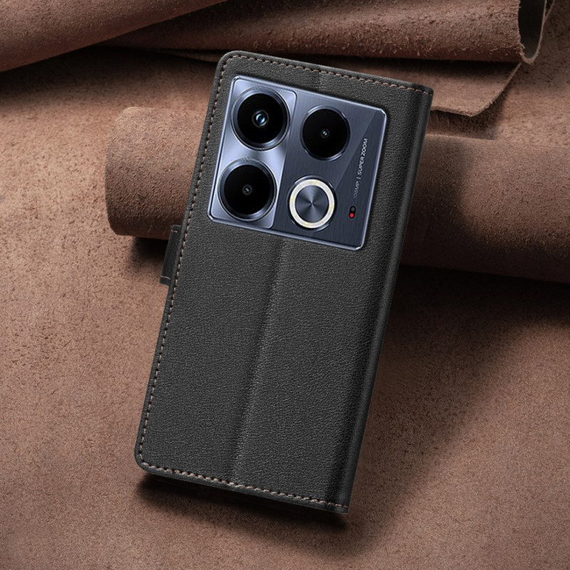 Découvrez l'étui BINFEN COLOR pour Infinix Note 40, alliant élégance et sécurité. Fabriqué en cuir PU texturé de qualité supérieure avec protection RFID intégrée, cet étui offre 3 emplacements pour cartes et un support mains libres pratique.