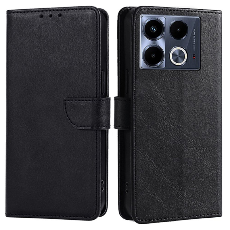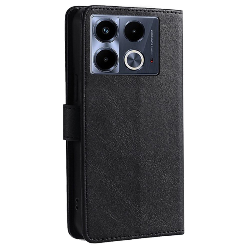 Étui portefeuille élégant pour Infinix Note 40 alliant protection et praticité. Conçu en cuir PU premium avec fermoir magnétique sécurisé, il offre des compartiments pour cartes et espèces. Support intégré pour visionnage mains libres et protection complète.