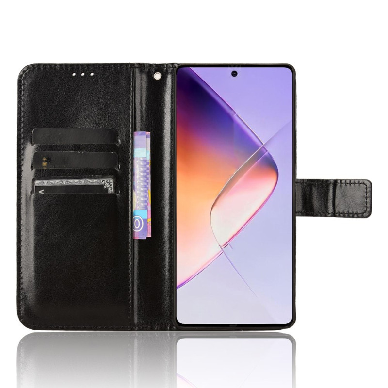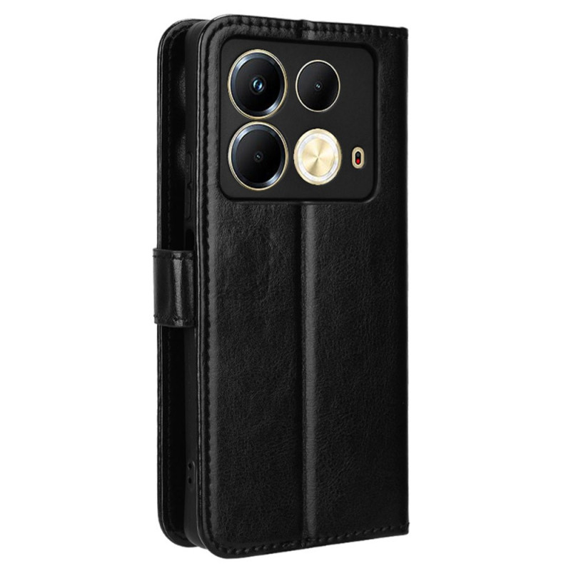 Étui portefeuille élégant en cuir PU avec texture grain pour Infinix Note 40 X6853. Doté de 3 emplacements pour cartes, d'un compartiment pour billets et d'une fonction support mains libres. Fermeture magnétique sécurisée et dragonne incluse pour un transport facile.
