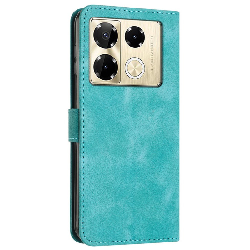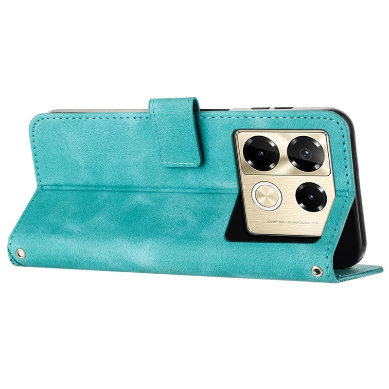 Étui portefeuille élégant pour Infinix Note 40 Pro 5G / 4G Pro combinant style et fonctionnalité. Doté de motifs triangulaires imprimés, 3 emplacements pour cartes, fonction support et dragonne détachable. Protection complète avec fermeture magnétique sécurisée.