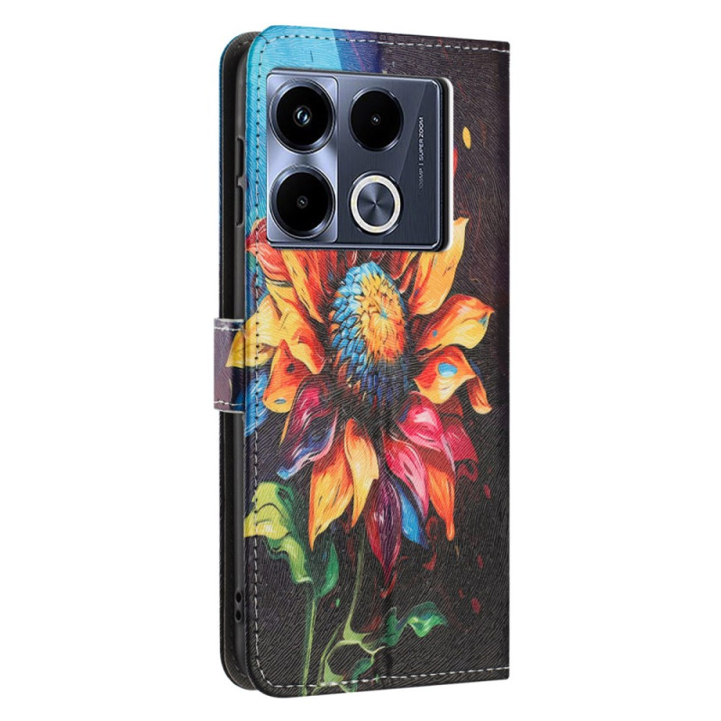 Protégez votre Infinix Note 40 Pro avec style grâce à cet élégant étui portefeuille à motif tournesol. Doté de fentes pour cartes, d'un support pliable et d'une fermeture magnétique pratique, cet étui combine fonctionnalité et design raffiné.
