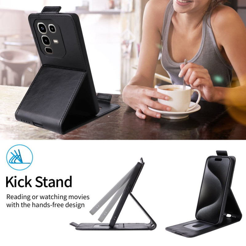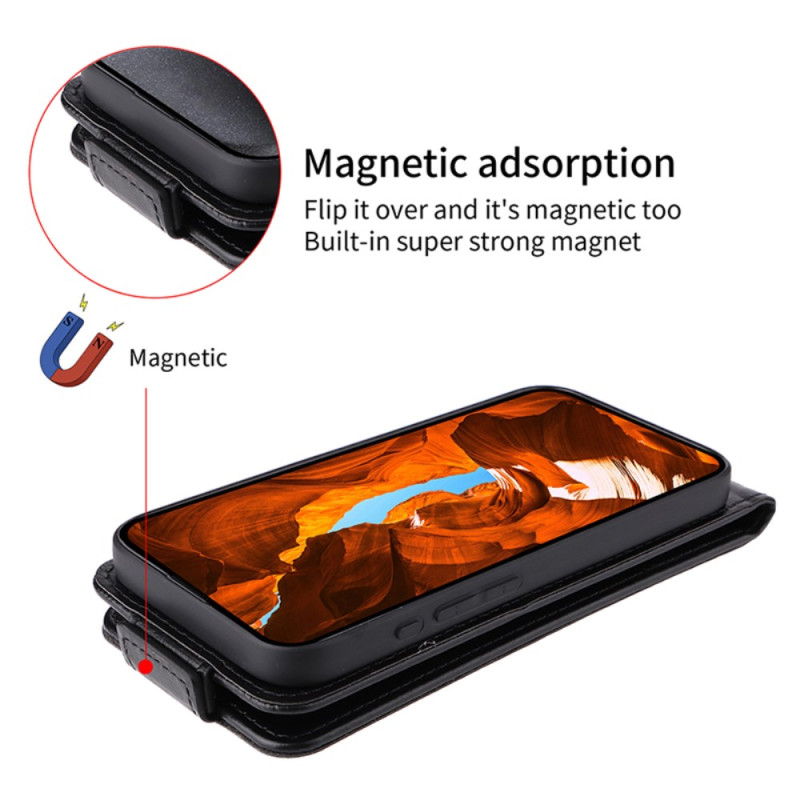 • Rabat vertical pour un accès facile : Le design unique à rabat vertical avec fermeture magnétique permet un accès rapide et pratique à votre téléphone tout en protégeant l'écran lorsqu'il est fermé