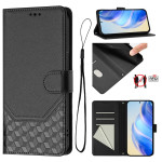Étui portefeuille élégant pour Infinix Note 50S 5G avec motif nid d'abeille gravé. Doté d'une protection RFID, de 3 emplacements pour cartes, d'un support mains libres et d'une dragonne pratique pour une sécurité optimale.