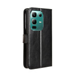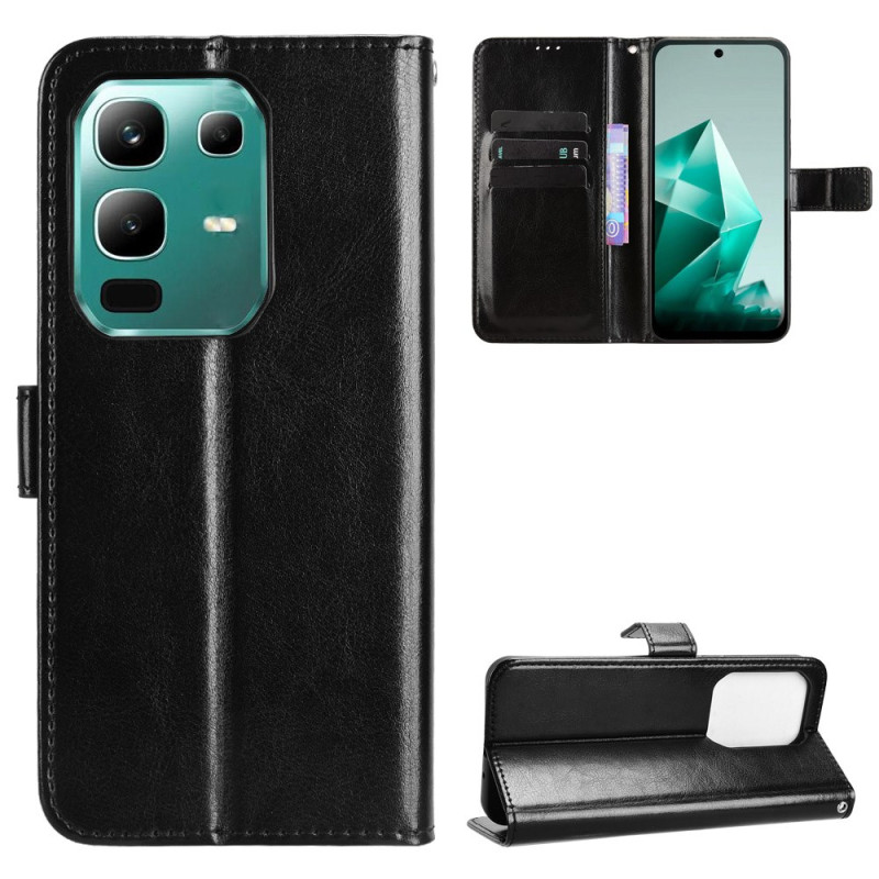 Étui portefeuille élégant en cuir PU texturé pour Infinix Note 50X 5G. Dispose de 3 emplacements pour cartes, d'un compartiment pour billets, d'une fonction support mains-libres et d'une fermeture magnétique sécurisée. Livré avec une dragonne pratique pour un transport facile.