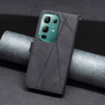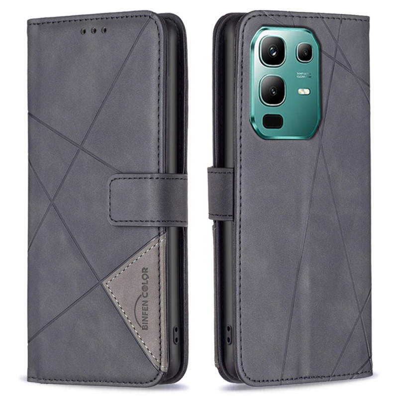 Étui portefeuille élégant pour Infinix Note 50X 5G avec support ajustable et design géométrique moderne. Combine protection intégrale et fonctionnalité avec 3 emplacements pour cartes et compartiment pour billets. Fermeture magnétique sécurisée.