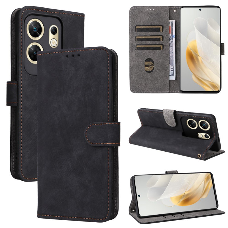 Étui multifonction en cuir PU pour Infinix Zero 30 4G X6731B avec protection RFID intégrée. Design portefeuille pratique avec 3 emplacements cartes, porte-monnaie et dragonne amovible. Support mains libres idéal pour regarder vos vidéos.