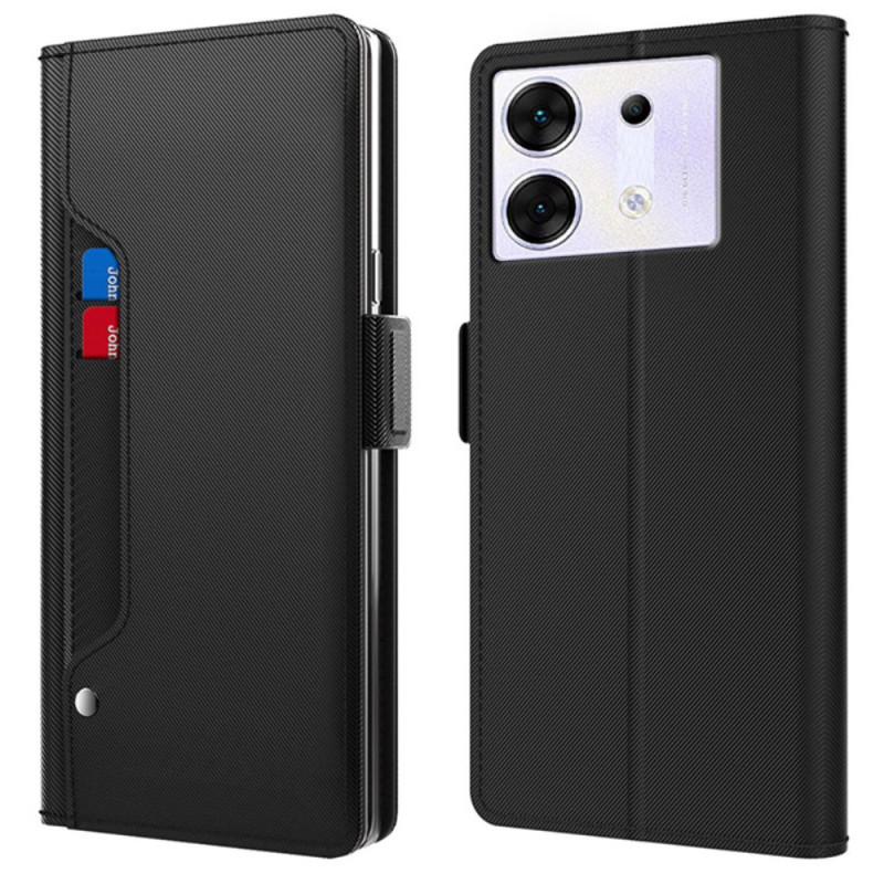 Étui folio élégant pour Infinix Zero 30 5G avec miroir intégré, fentes pour cartes et support ajustable. Protection complète avec fermeture magnétique sécurisée et bords surélevés pour protéger l'appareil photo. Design sophistiqué parfait pour un style de vie actif.