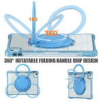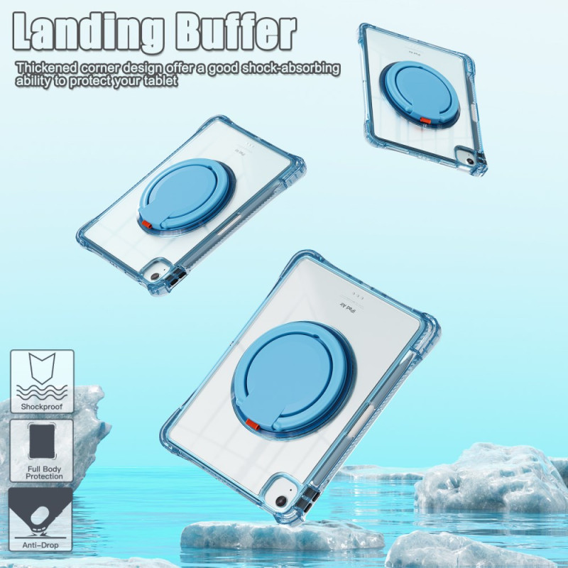 Découvrez notre coque polyvalente pour iPad Air 11 (2025) (2024)/Air (2022) (2020)/ Pro 11 (2022) (2021) (2020) (2018), dotée d'une poignée rotative à 360°, d'une protection intégrale du corps, de coins absorbant les chocs, d'un support réglable, d'un dos en acrylique transparent et d'une bandoulière en nylon réglable.