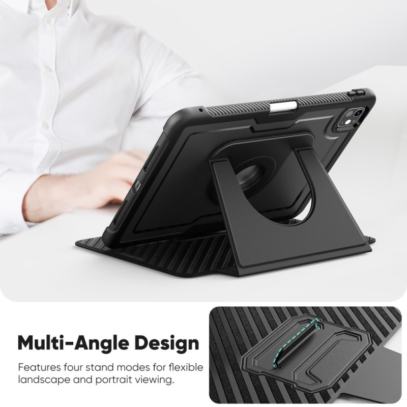 Cet étui innovant pour iPad Pro 11 (2025) / 11 (2024) offre une protection hybride avec un dos en PC, un TPU souple et un rabat en cuir PU. Son design détachable magnétique, sa fonction veille/réveil automatique et son support multi-angles en font l'accessoire idéal pour une utilisation polyvalente. De plus, sa structure de dissipation thermique et son porte-stylet intégré assurent confort et praticité au quotidien. Protégez votre iPad avec style et praticité grâce à cet étui polyvalent, parfait pour les professionnels et les amateurs de technologie exigeants.