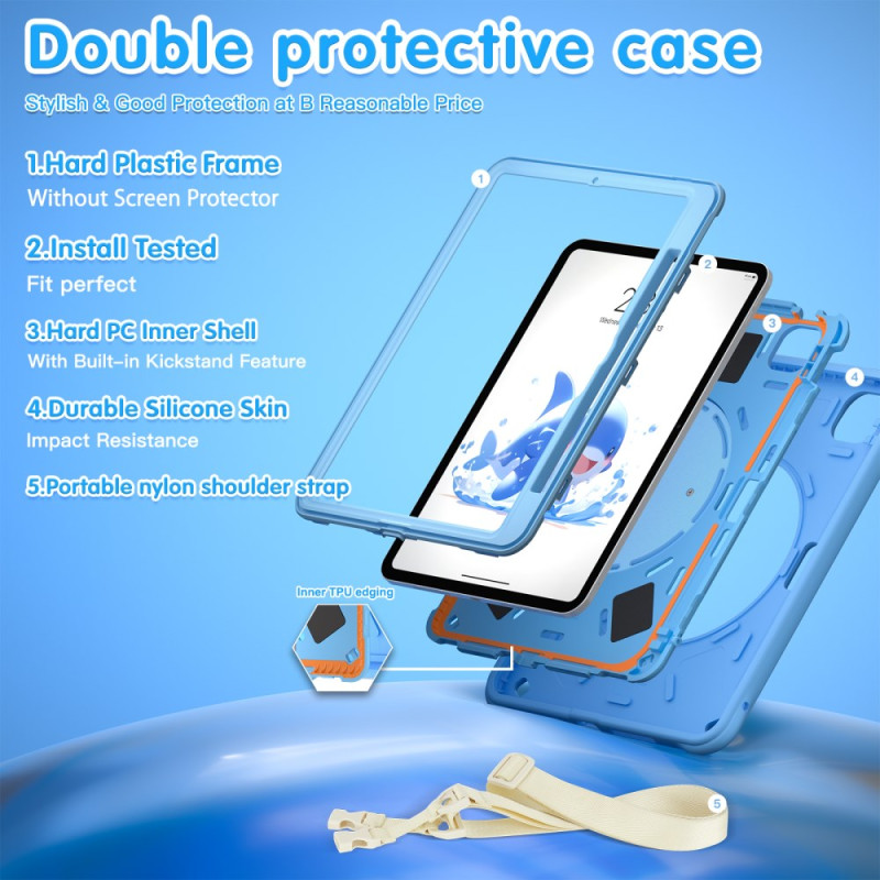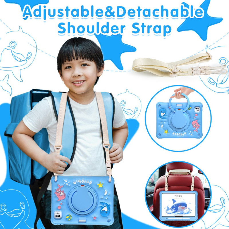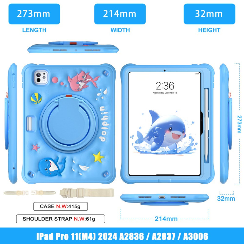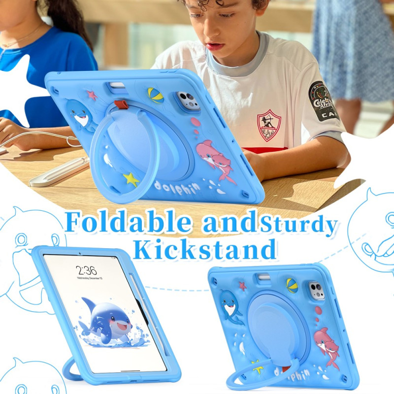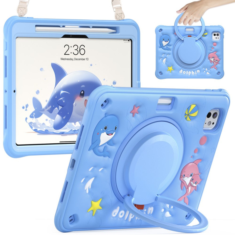 Découvrez notre étui adorable et multifonctionnel pour iPad Pro 11 (2025) / 11 (2024). Avec son motif dauphin mignon, sa protection multicouche, sa poignée rotative et sa béquille pliable, il offre une protection optimale et une grande polyvalence. Profitez également du porte-crayon intégré et de la bandoulière détachable pour une portabilité maximale.