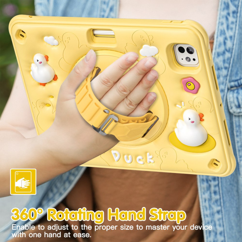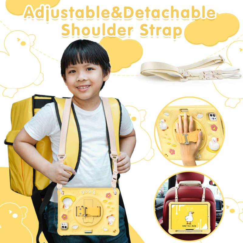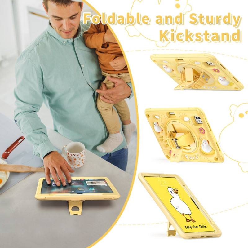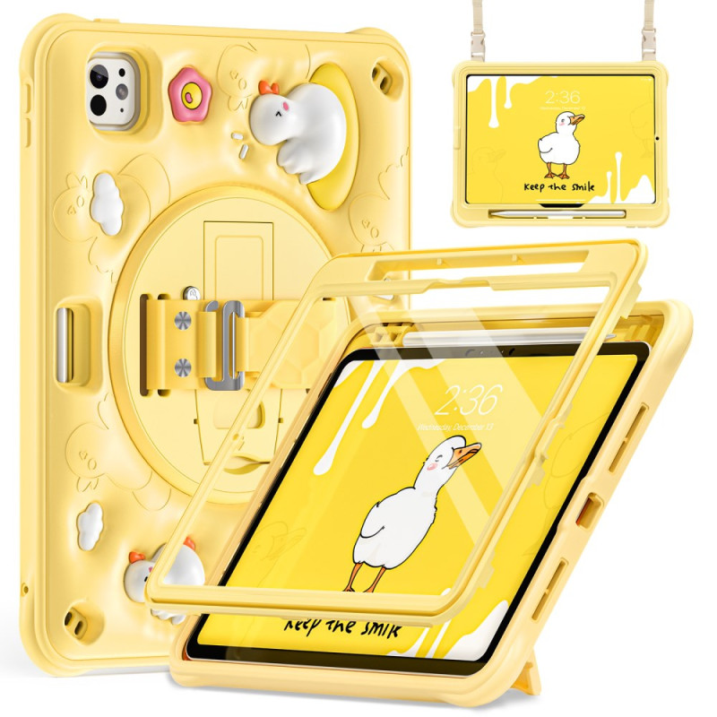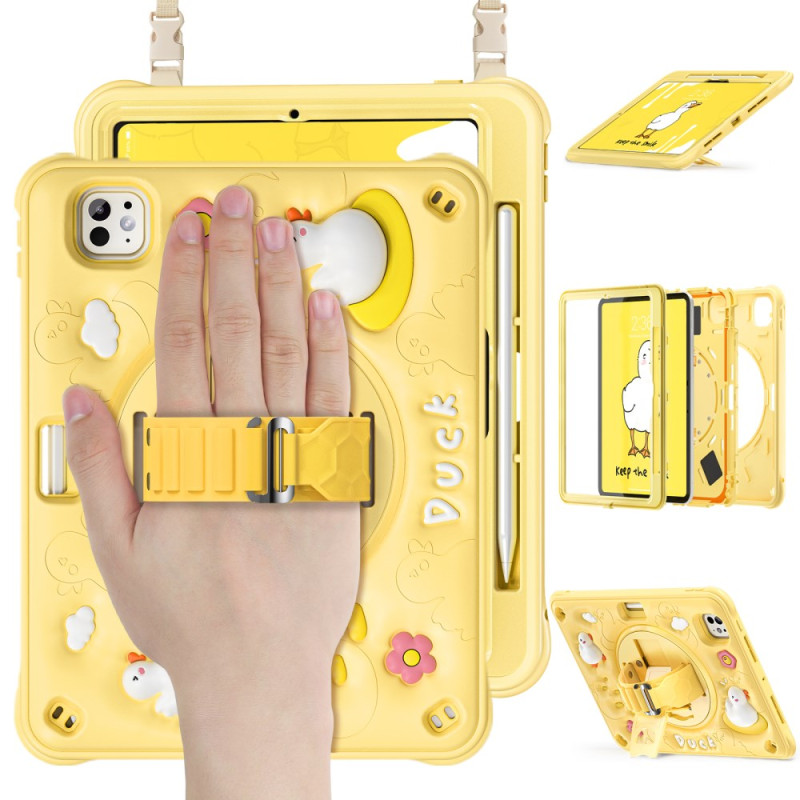 Découvrez notre étui innovant pour iPad Pro 11, alliant protection et style. Doté d'un support pratique, d'une sangle d'épaule détachable et d'un motif canard adorable, il offre une protection multicouche avec coins renforcés. La poignée rotative à 360° assure une prise en main confortable, idéale pour une utilisation quotidienne.