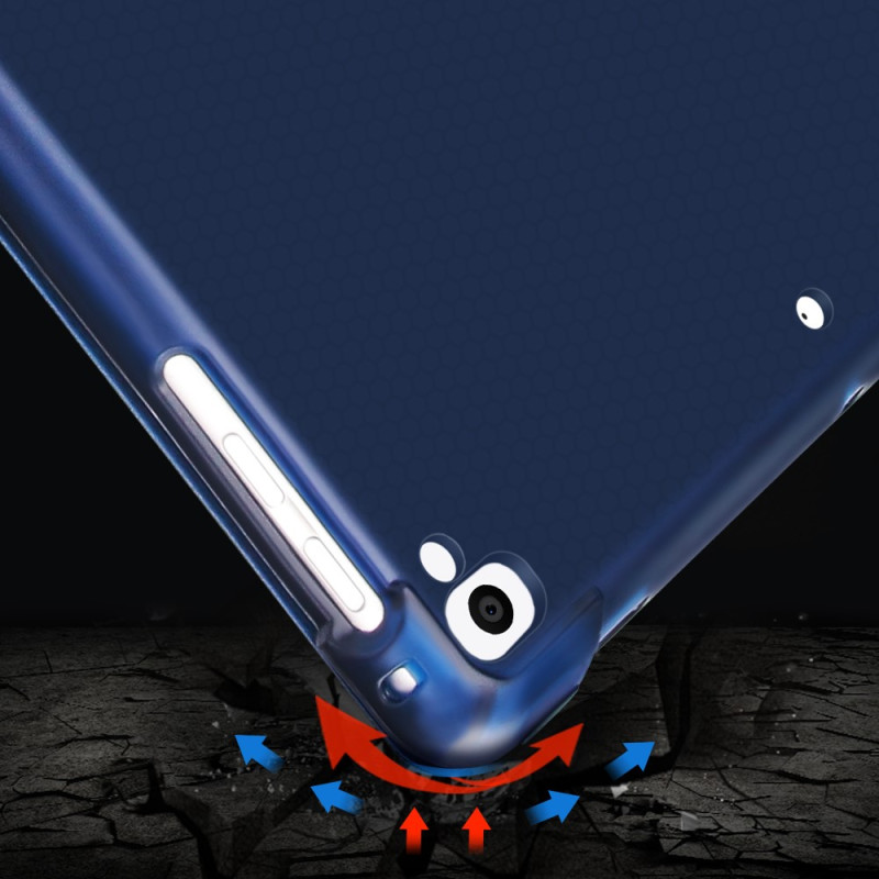 Votre tablette est protégée contre les rayures, les chocs et les intempéries par une coque en silicone flexible et une couverture en simili cuir.