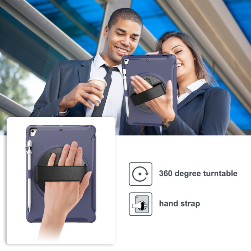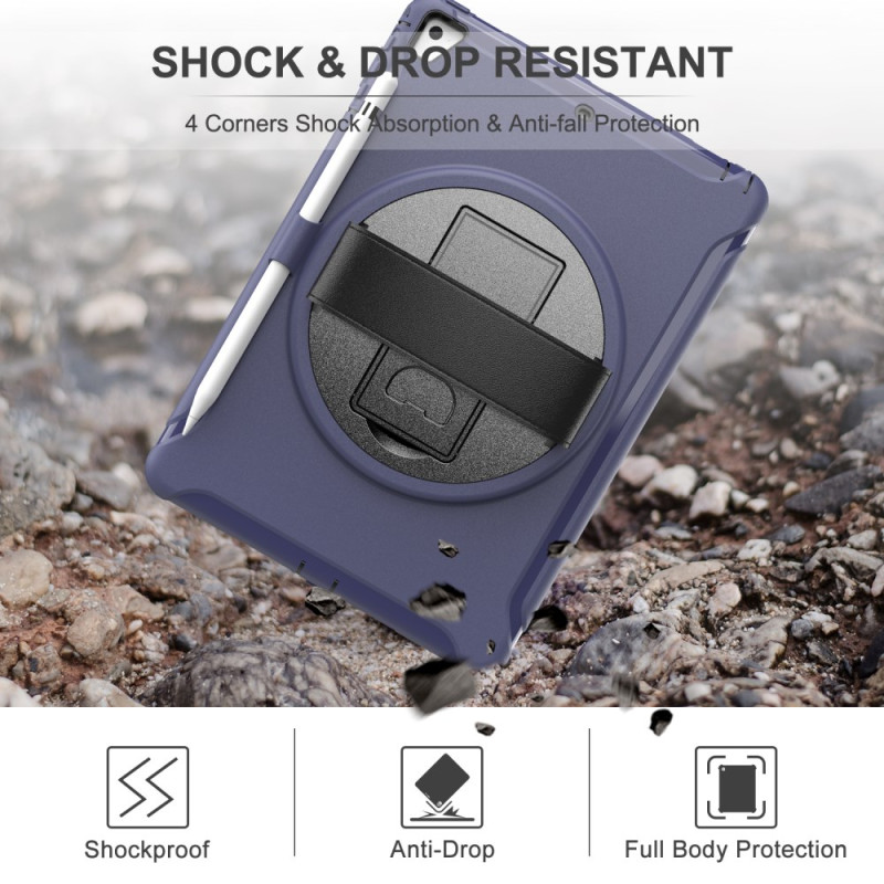 Protection complète pour iPad( 9.7 pouces) / iPad Pro 9.7 pouces / iPad Air / iPad Air 2 avec support pivotant 360°, sangle main ajustable et emplacement stylet. Conception robuste en PC et TPU avec doublure intérieure en mousse pour une protection optimale contre les chocs et les rayures au quotidien.
