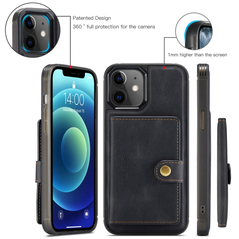 Découvrez la coque JEEHOOD J01 pour iPhone 12 / 12 Pro, alliant fonctionnalité et style. Cette coque en cuir innovante offre une protection robuste, un porte-cartes magnétique détachable et une compatibilité MagSafe. Profitez d'un design 2-en-1 pratique avec multiples rangements pour cartes, fonction support intégrée et protection renforcée de la caméra.