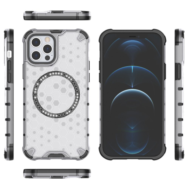 Découvrez notre coque magnétique innovante pour iPhone 12 / 12 Pro. Alliant TPU et PC, elle offre une protection optimale avec son design en nid d'abeille élégant. Renforcée aux coins, elle résiste aux chocs et aux chutes. Compatible MagSafe, elle assure une charge sans fil pratique tout en protégeant votre téléphone.