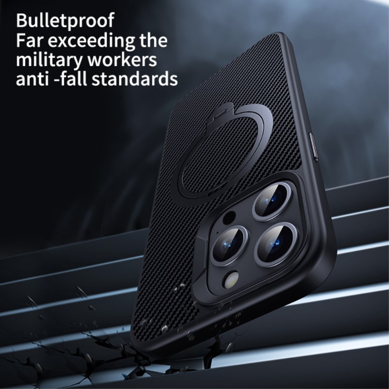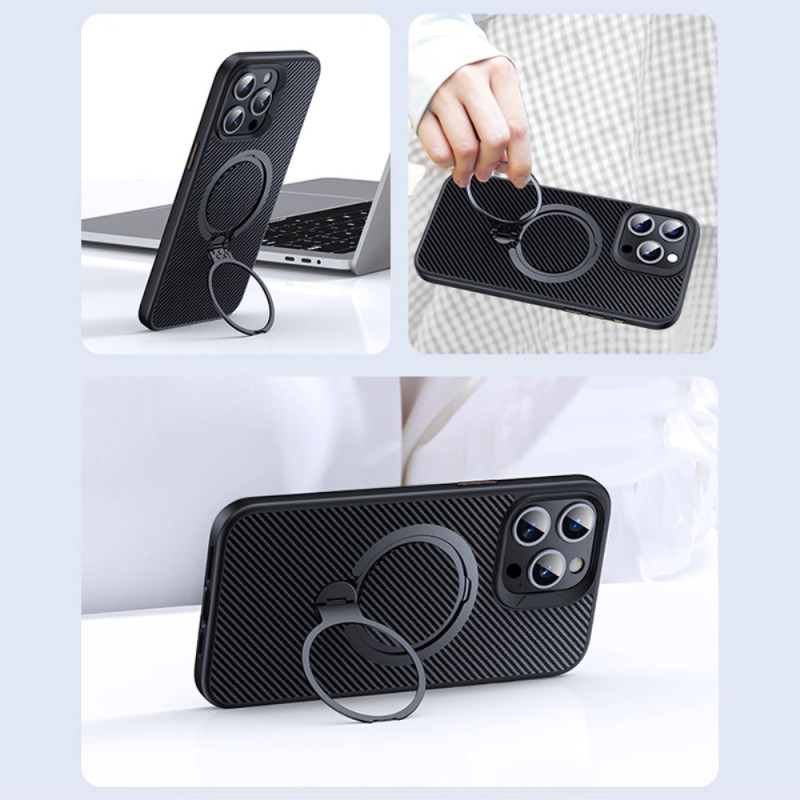 Cette coque protectrice robuste pour iPhone 12 / 12 Pro offre une durabilité exceptionnelle grâce à ses matériaux PC+TPU. Dotée d'un support rotatif à 360°, elle permet une utilisation mains libres pratique. Sa texture en fibre de carbone ajoute du style tout en assurant une prise en main sûre. Compatible avec les chargeurs MagSafe, elle offre une charge sans fil efficace.