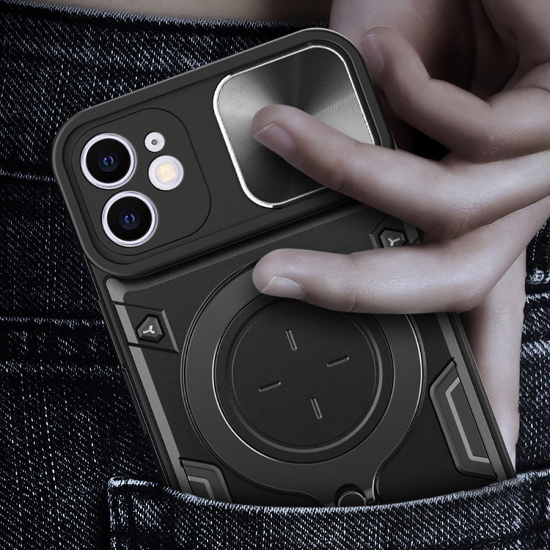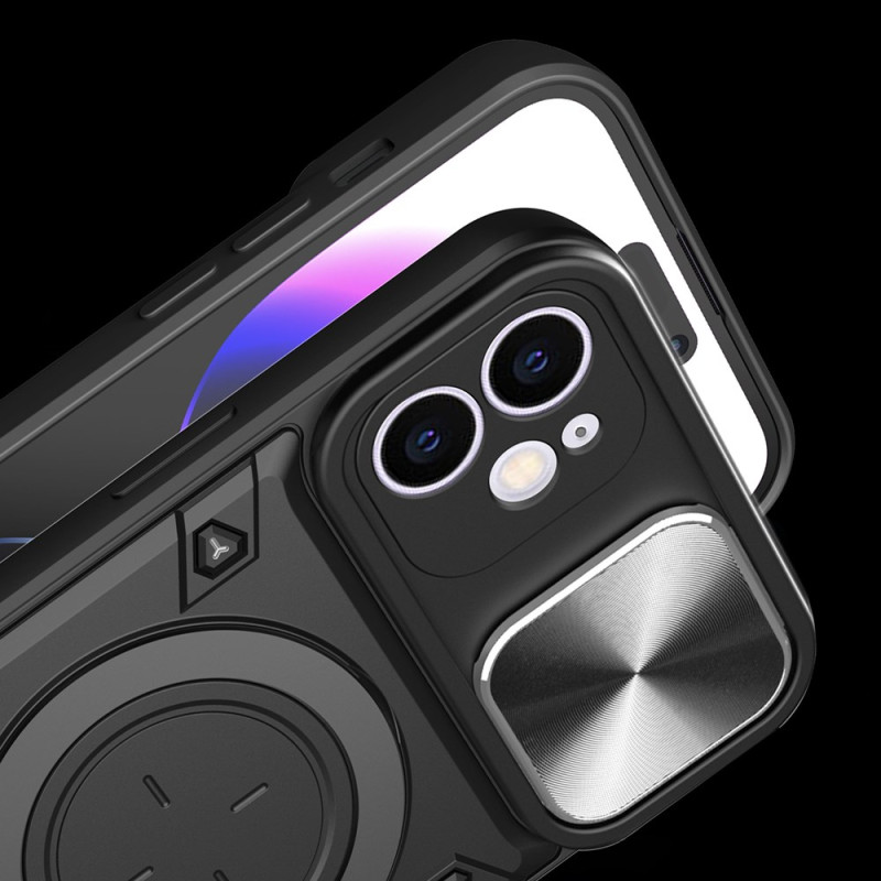 Découvrez notre coque de protection innovante pour iPhone 12. Dotée d'un couvercle coulissant pour la caméra et d'un support rotatif à 360°, cette coque allie fonctionnalité et sécurité. Fabriquée en TPU et plastique, elle offre une protection optimale contre les chocs et les rayures.