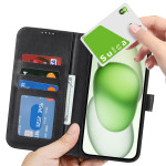 Étui portefeuille multifonction pour iPhone 13 Mini en cuir PU de qualité supérieure. Comprend 3 fentes pour cartes, 1 poche latérale, fermeture magnétique sécurisée et fonction support. Protection antichoc renforcée avec double rebord pour une durabilité optimale.
