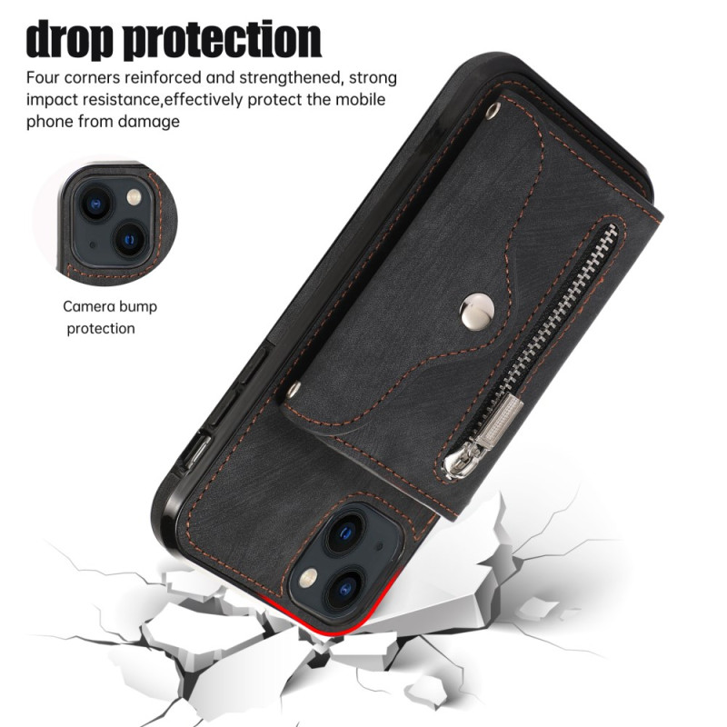 Protégez votre iPhone 13 Mini avec style grâce à cet étui portefeuille multifonction. Doté de multiples emplacements pour cartes, d'une protection RFID et d'une poche zippée sécurisée, il allie élégance et praticité au quotidien.