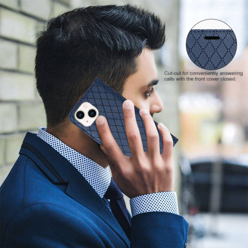 Protégez votre iPhone 13 mini avec élégance grâce à cet étui portefeuille multifonction. Design sophistiqué avec texture litchi et motif losange embossé, slots pour cartes intégrés et technologie RFID.