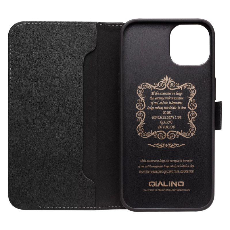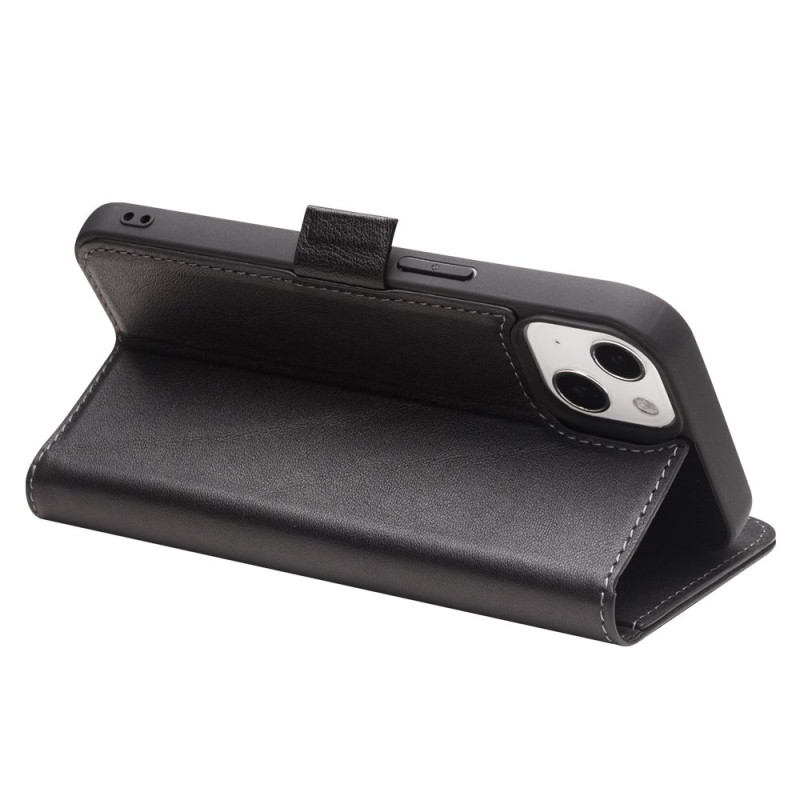 Étui portefeuille élégant et protecteur pour iPhone 13 Mini. Design sophistiqué avec fermeture magnétique double, fonction support intégrée et emplacements pour cartes. Protection optimale contre les chocs et les rayures pour votre smartphone.