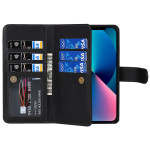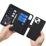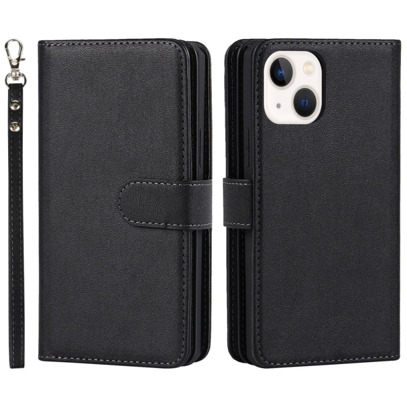 Étui portefeuille multifonction détachable pour iPhone 13 Mini. Conception 2-en-1 avec multiples emplacements pour cartes, poches pour espèces et support pliable. La coque intérieure détachable offre une protection optimale contre les chocs du quotidien.
