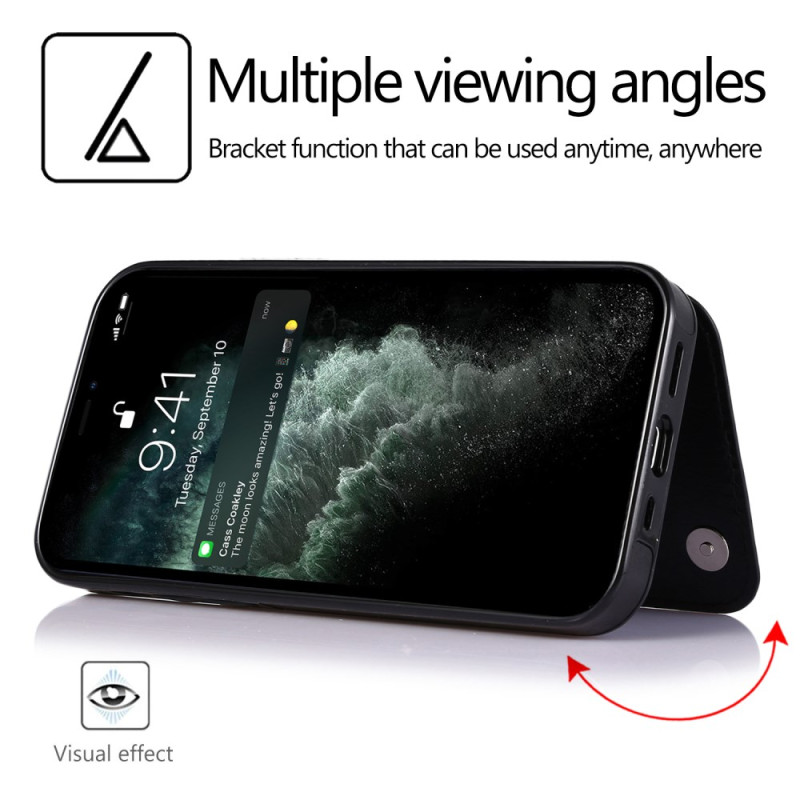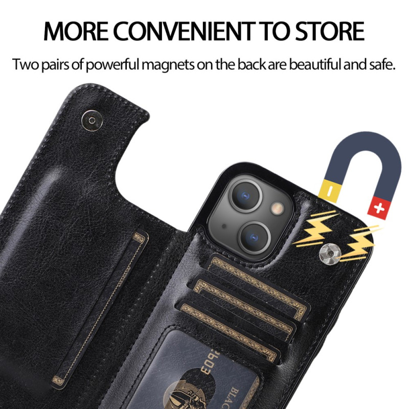 Protégez votre iPhone 13 Mini avec style grâce à cette coque en cuir PU texturé effet Crazy Horse. Elle dispose d'un porte-cartes intégré, d'un support mains-libres et de fermetures magnétiques doubles pour une sécurité optimale.