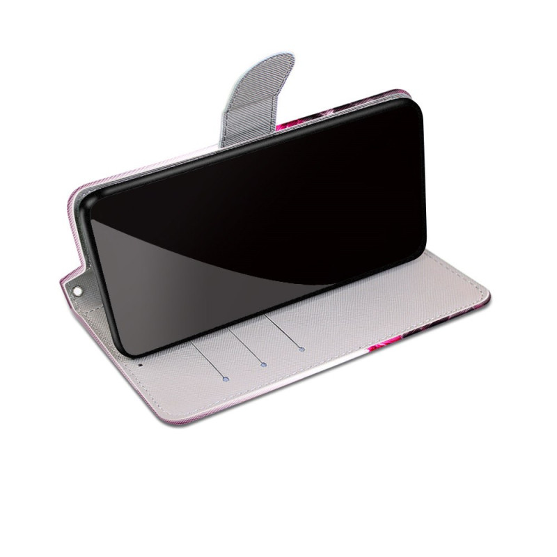 Protégez votre iPhone 13 Mini avec élégance grâce à cet étui portefeuille au motif rose sauvage distinctif. Doté d'un support pliable pratique, de multiples fentes pour cartes et d'une dragonne pour un transport facile.