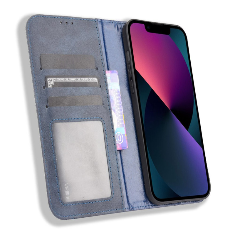 Protégez votre iPhone 13 Mini avec élégance grâce à cet étui portefeuille vintage en cuir PU. Doté d'une bordure mosaïque gravée, de fentes pour cartes, d'un support ajustable et d'une fermeture magnétique automatique.