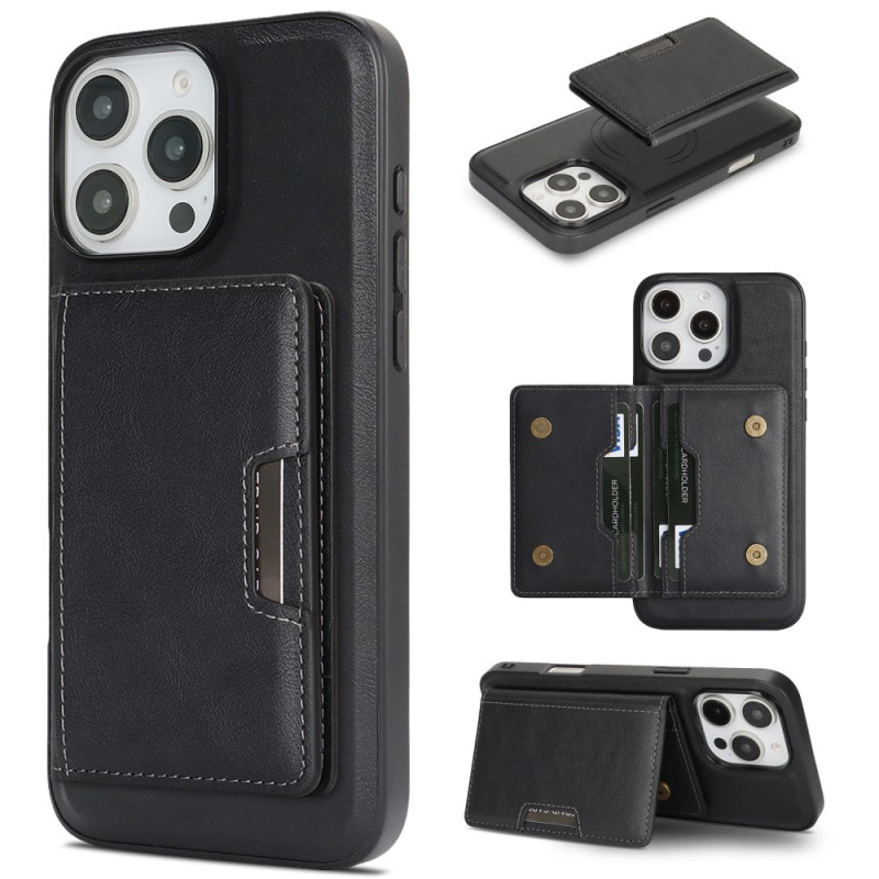 Étui sophistiqué avec support pliable et porte-cartes magnétique détachable pour iPhone 13 Pro Max. Compatible MagSafe pour une charge sans fil optimale. Multiples emplacements pour cartes et protection intégrale de votre appareil.