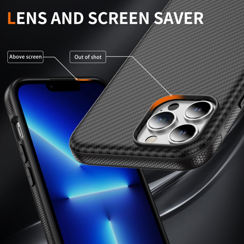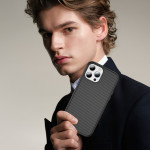 Protégez votre iPhone 13 Pro Max avec style grâce à cette coque premium au toucher soyeux et texture fibre de carbone. Compatible MagSafe, elle offre une protection optimale contre les chocs et les rayures tout en conservant un design élégant et professionnel.