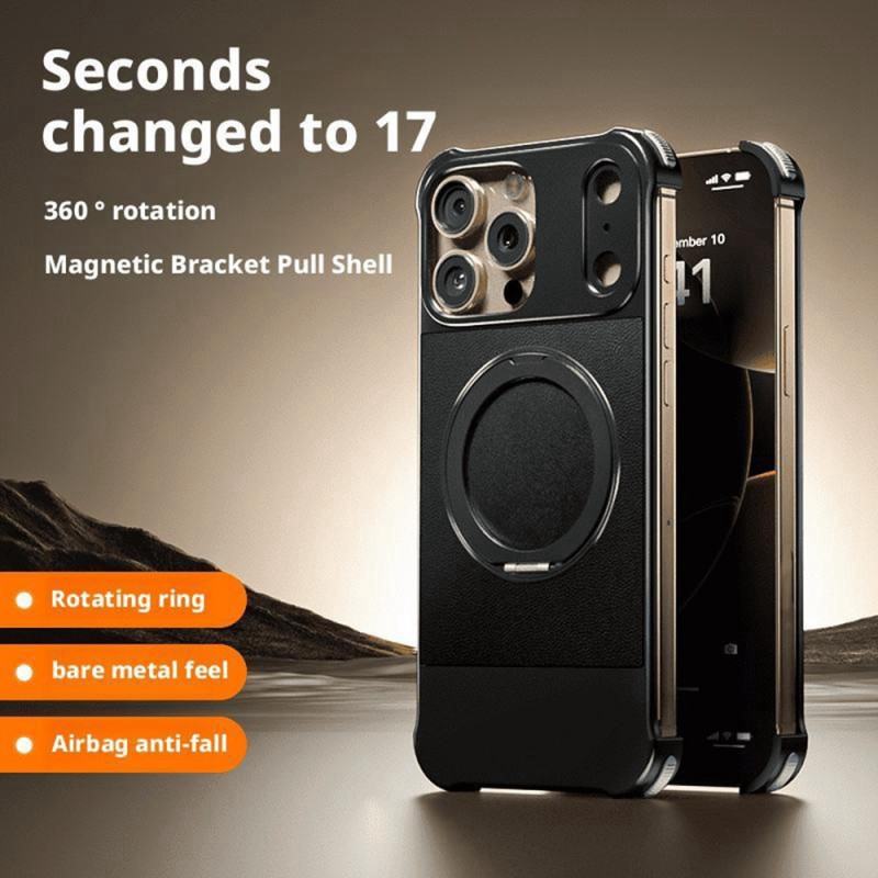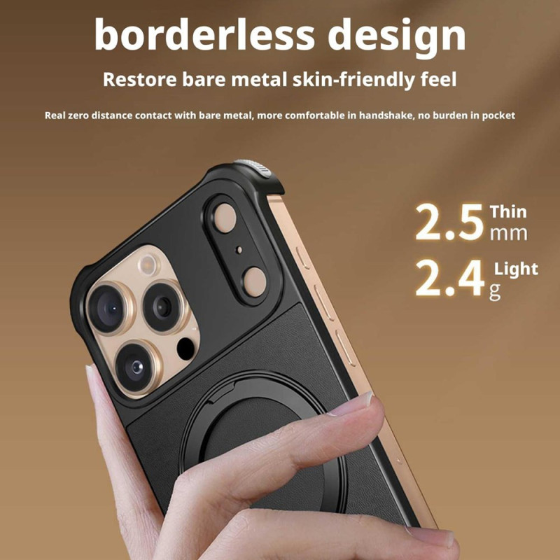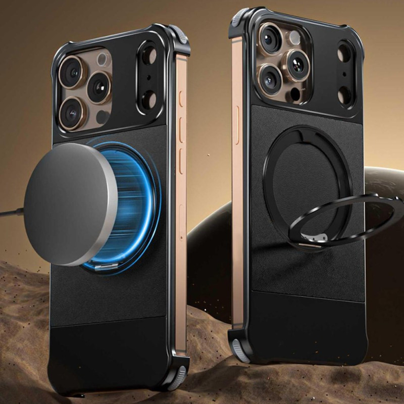 Coque magnétique élégante pour iPhone 13 Pro Max avec support multifonctionnel intégré. Compatible MagSafe et chargement sans fil. Design sans bordure avec protection renforcée aux angles. Installation facile par système coulissant.