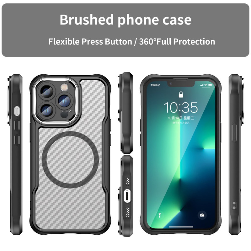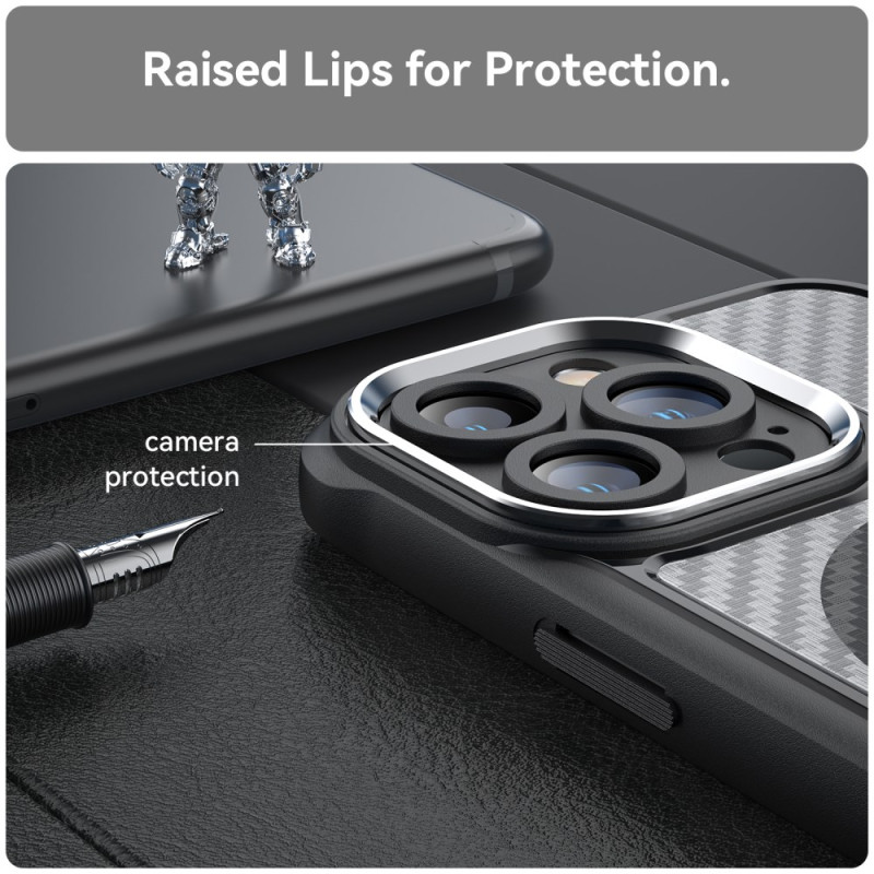 Protection premium pour votre iPhone 13 Pro Max avec compatibilité MagSafe. Cette coque allie robustesse et élégance grâce à sa texture fibre de carbone anti-traces. Offrez à votre smartphone une défense optimale contre les chocs et rayures.