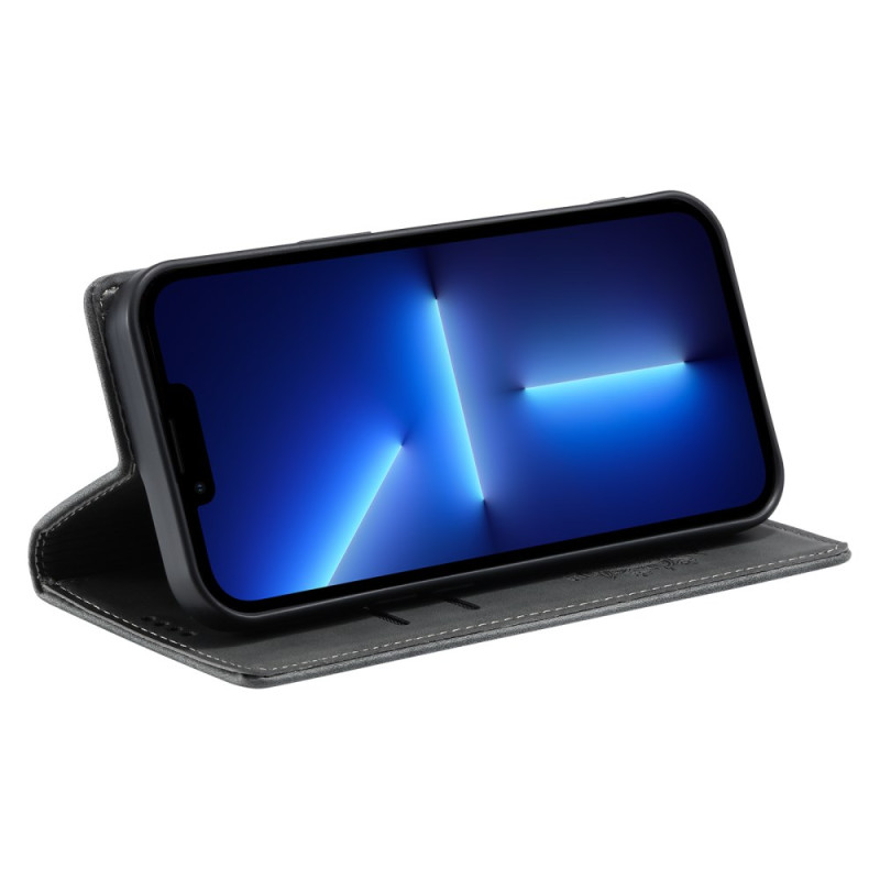 Étui élégant en cuir PU avec fermeture magnétique automatique pour iPhone 13 Pro Max. Doté de 2 emplacements pour cartes et d'un support mains libres intégré. Protection complète contre les chocs quotidiens avec un design pratique et raffiné.