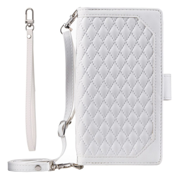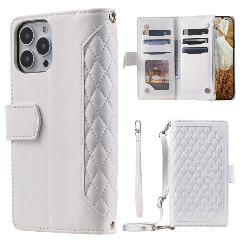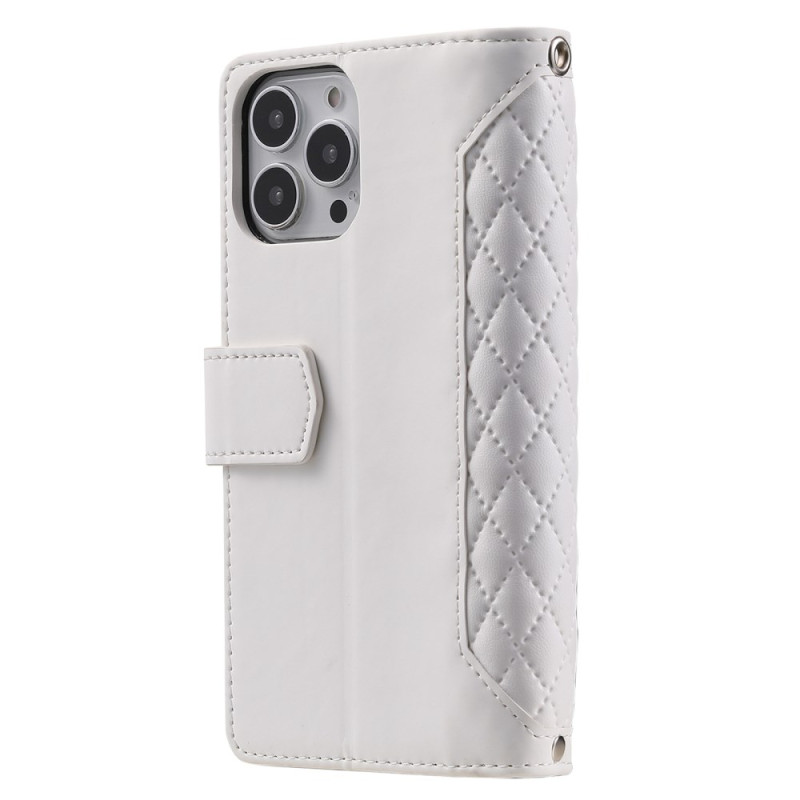 Découvrez cet étui portefeuille élégant pour iPhone 13 Pro Max. Conçu en cuir PU texturé losange avec coque TPU flexible, il offre une protection complète contre les chocs. Doté de multiples emplacements pour cartes, d'une poche zippée et d'un support pliable pour un visionnage mains libres.