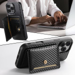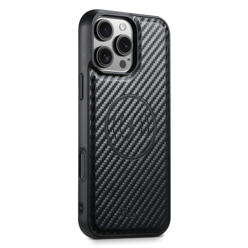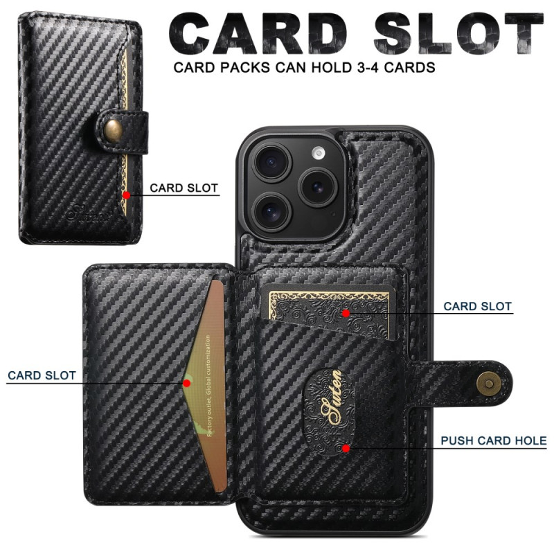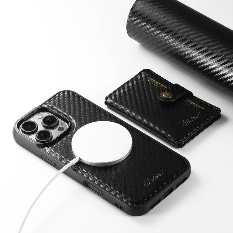 Découvrez la coque magnétique SUTENI H20 pour iPhone 13 Pro : design élégant à texture fibre de carbone, porte-cartes détachable pour 3-4 cartes, support mains libres ajustable et compatible MagSafe. Protection optimale avec fonctionnalité 2-en-1.