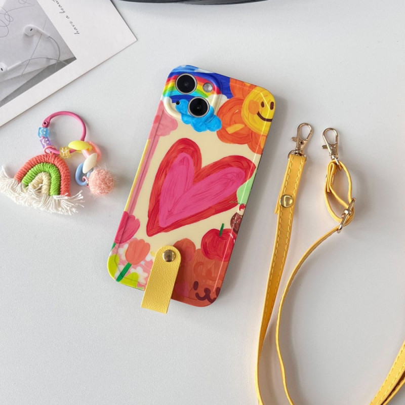 Découvrez notre coque élégante pour iPhone 13, alliant style et protection. Avec son motif cœur graffiti et sa décoration arc-en-ciel, elle apporte une touche de fantaisie à votre téléphone. La sangle en cuir ajustable offre un transport pratique, tandis que la conception antichoc protège votre appareil au quotidien.