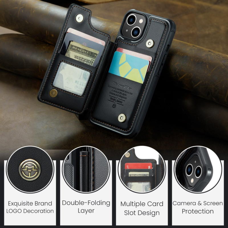 Découvrez notre étui de protection haut de gamme pour iPhone 13. Fabriqué en cuir PU texturé et TPU durable, il offre une protection RFID, des emplacements pour cartes, une fermeture magnétique double et une fonction support. Avec ses bords surélevés pour protéger l'écran et l'appareil photo, cet étui allie fonctionnalité et élégance pour une utilisation quotidienne pratique.