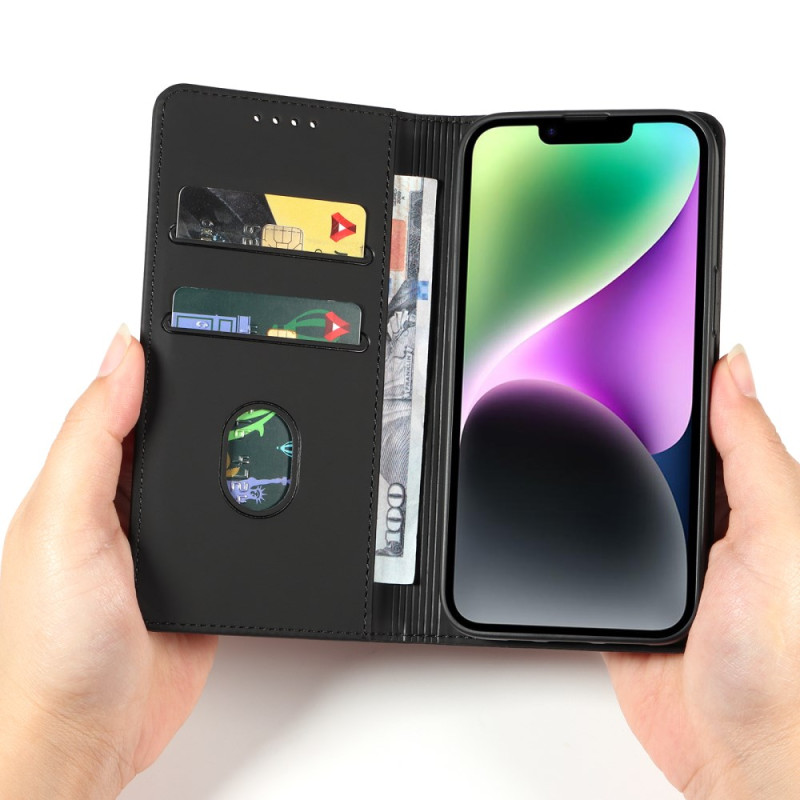Découvrez notre housse portefeuille pour iPhone 14 Plus, alliant protection et fonctionnalité. Fabriquée en cuir PU de haute qualité, elle offre une sensation agréable au toucher et une protection complète contre les rayures et les chutes. Avec ses fonctionnalités pratiques comme le support intégré et la fermeture magnétique, cette coque est l'accessoire parfait pour votre smartphone.