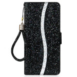 Housse portefeuille en cuir PU scintillant pour iPhone 14 Plus. Protection premium, design élégant, fonction support et fermeture magnétique. Rangements pratiques pour cartes et argent. Dragonne incluse pour transport facile.