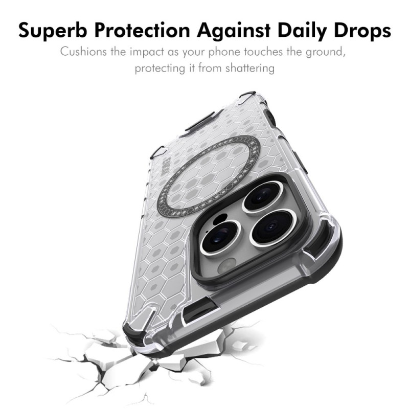 Protection complète 2-en-1 pour votre iPhone 14 Pro Max : coque magnétique au design alvéolé élégant et protecteur d'écran en verre trempé 9H. Compatible MagSafe, résistant aux chocs et rayures pour une sécurité optimale au quotidien.