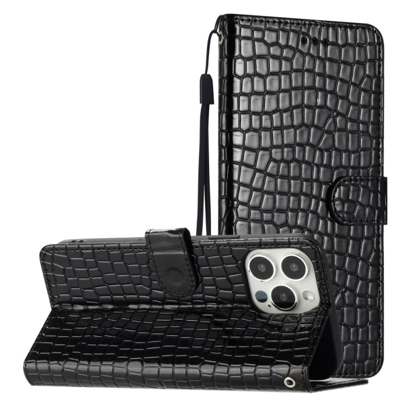 Protégez votre iPhone 14 Pro Max avec élégance grâce à cet étui portefeuille multifonction. Doté d'une texture crocodile sophistiquée, il intègre 3 emplacements pour cartes, une poche latérale et un support pliable pratique.