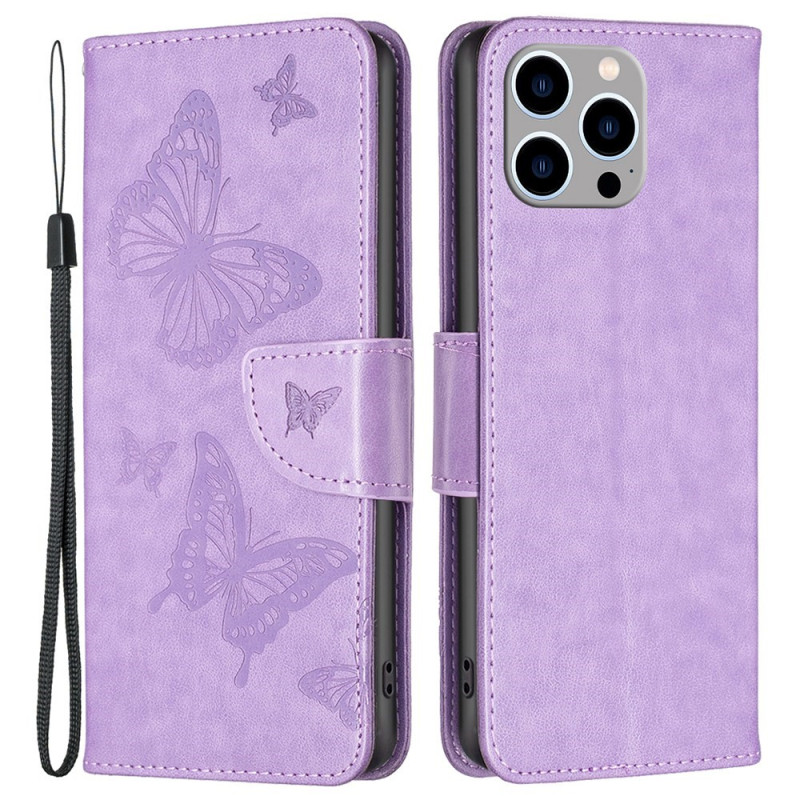 La housse en simili cuir Papillons imprimés vient avec une lanière pratique pour transporter l'iPhone 14 Pro Max.