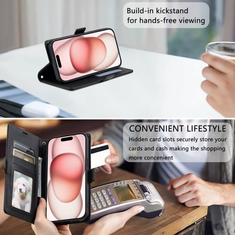 Découvrez notre étui en cuir élégant pour iPhone 14 Pro. Doté d'une texture losange raffinée, il offre une protection complète et des fonctionnalités pratiques. Avec ses 3 fentes pour cartes, son emplacement pour billets et sa dragonne, il allie style et fonctionnalité. Le support intégré permet une utilisation mains libres pour regarder des vidéos ou passer des appels.