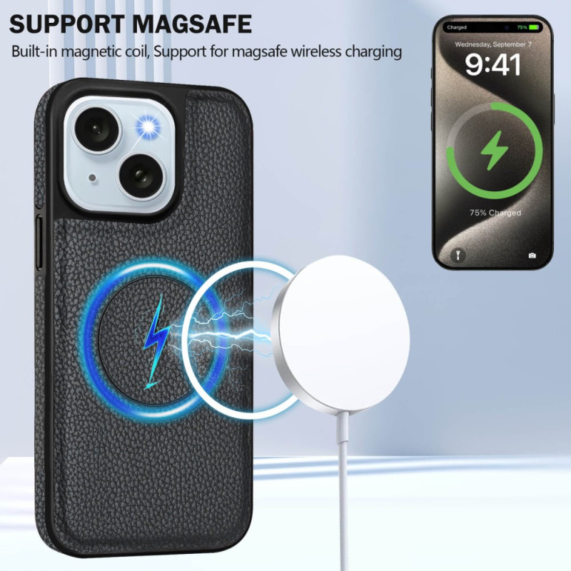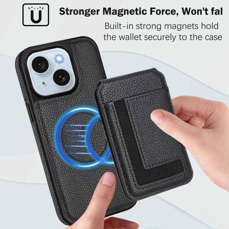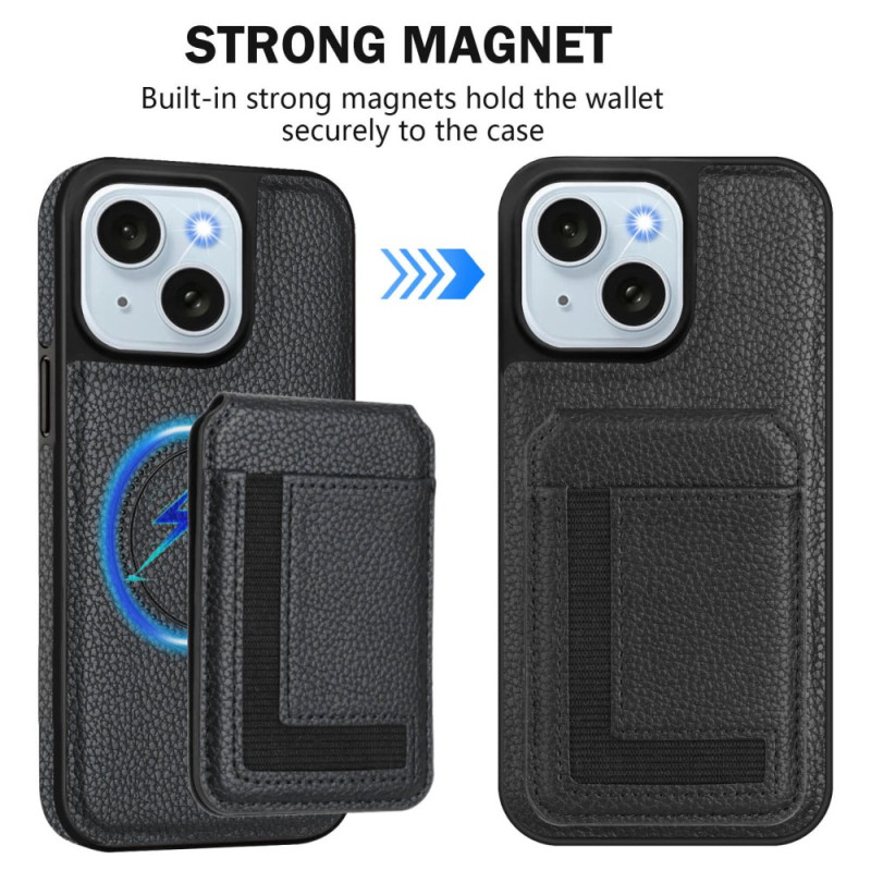 Découvrez notre coque magnétique innovante pour iPhone 15 Plus. Alliant élégance et fonctionnalité, elle offre une protection premium en cuir PU et TPU, un porte-cartes détachable pouvant accueillir jusqu'à 3 cartes, et une compatibilité MagSafe pour une charge sans fil pratique. Son design polyvalent inclut un support intégré pour un visionnage mains libres et une fixation magnétique pour voiture.