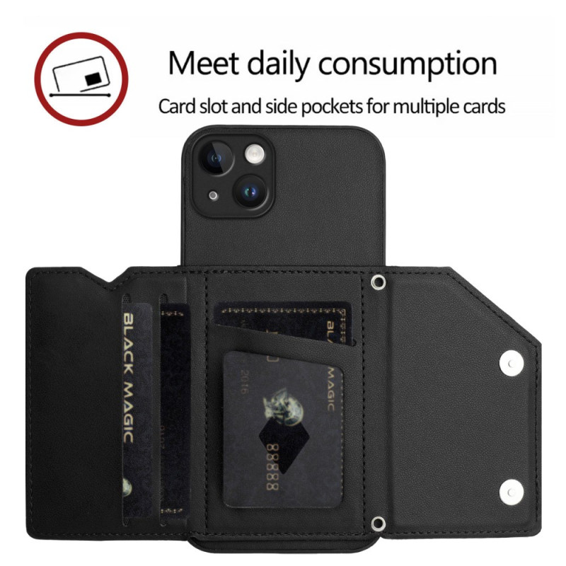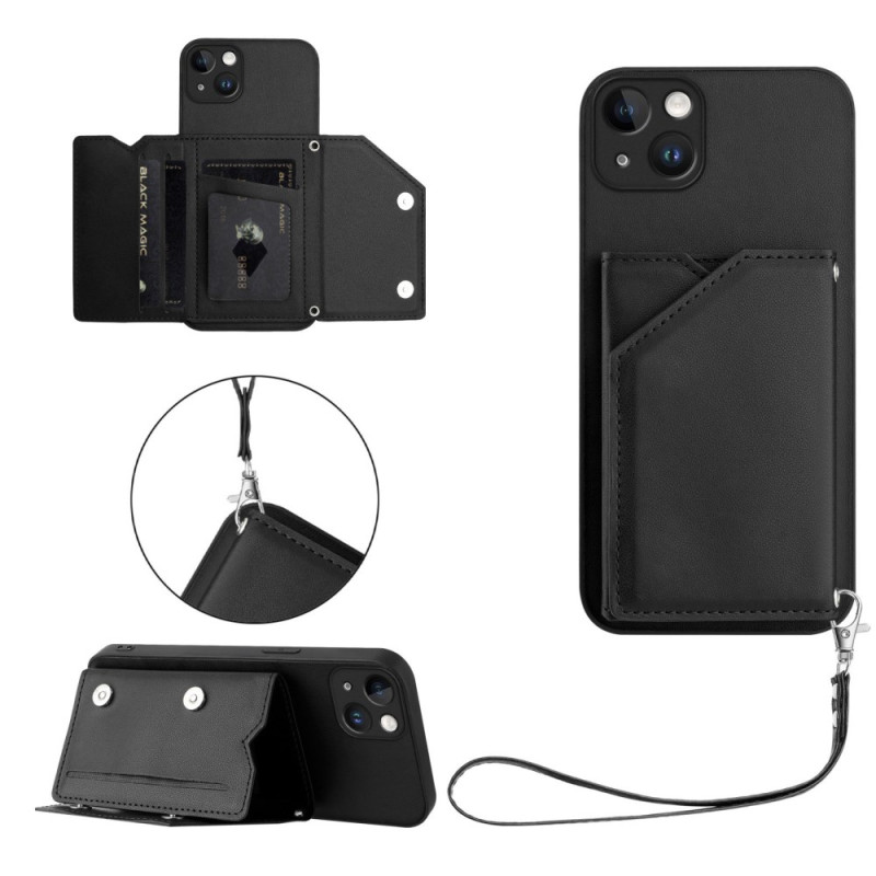 Coque iPhone 15 Plus Effet Daim Porte-Cartes et Lanière