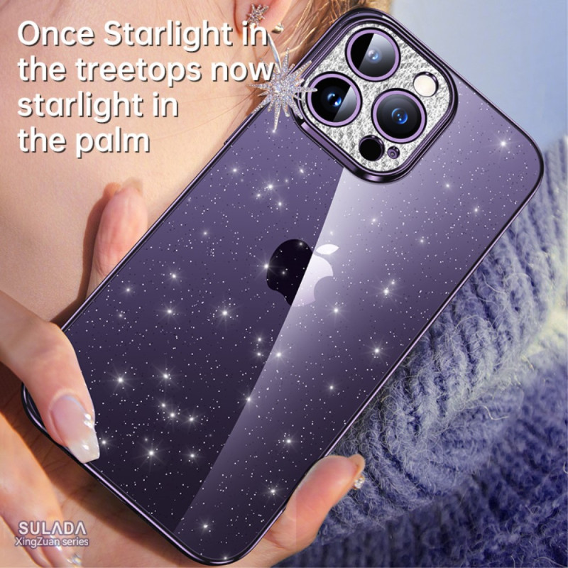 Votre iPhone 15 Pro Max est très bien protégé avec cette coque de chez Sulada décorée de paillettes et de strass.